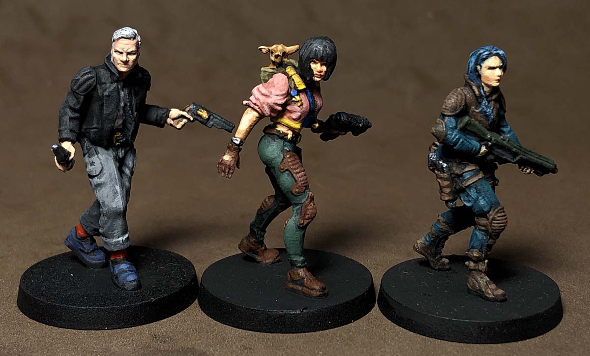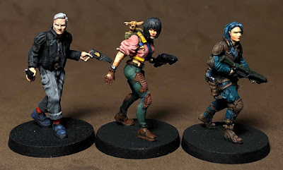 Usually, we are somewhat sticklers for painting the minis as they are represented in the original art for their respective games, but the Hate figures were a little too close in "look" for that to be feasible; we like to easily find our forces on the table during play. So Elizabeth came up with the idea of choosing alternate skin colors as well as color schemes for each tribe. It worked like a charm.