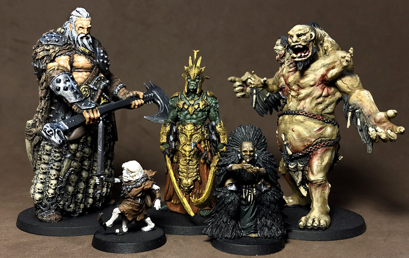 It's still not finished. We have a half-dozen tribes yet to go as well as a few monsters and mercenaries, but we do have enough tribes painted to do a full 6-player chronicle. One thing about these figures is there is an absolute TON of detail to find, decipher, and paint. We only paint either a couple figures at a time, or a couple colors at a time for each tribe. It took me about a week and a half to each of my tribes. But damn, we love our little families of barbarians.